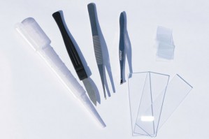 Les instruments de travail indispensables pour préparer des échantillons en microscopie sont, bien évidemment le scalpel, une pince fine, des lames et lamelles, une pipette pasteur (ou un instrument qui permet de déposer une goutte de liquide sur la lame) et du papier absorbant.